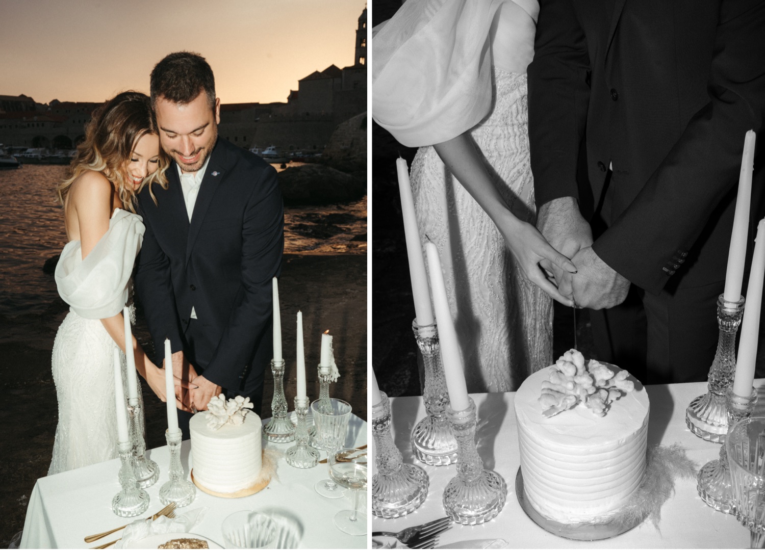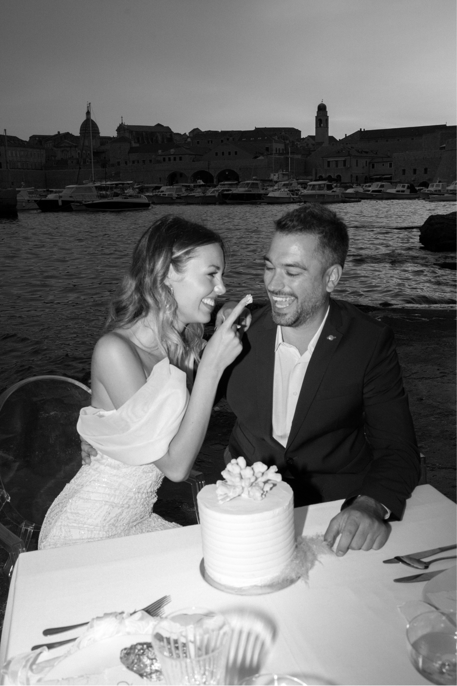 Thankful for The Art of Small Gatherings, Dubrovnik Wedding Inspiration, and Showroom Design & Events for creating the perfect atmosphere for this beautiful destination European elopement. The table settings overlooking the water were pristine and made for an absolutely magical meal by the water.